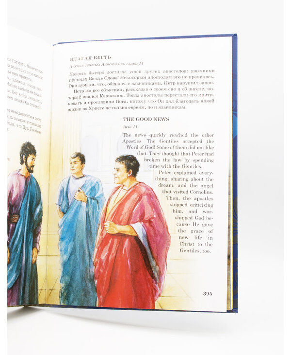 «Русско-английская Библия для детей», возможно, первой распахнет перед вашим ребенком дверь в мир библейских историй, познакомит его с идеей спасения и заложит прочный фундамент его веры.